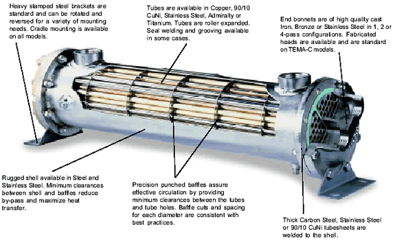 Tubes: | 1/4″, 3/8″ or 5/8″ diameter tubes available in Copper, Admiralty, 90/10 CuNi, or 304 S/S. Straight tube or U-Tube configurations |